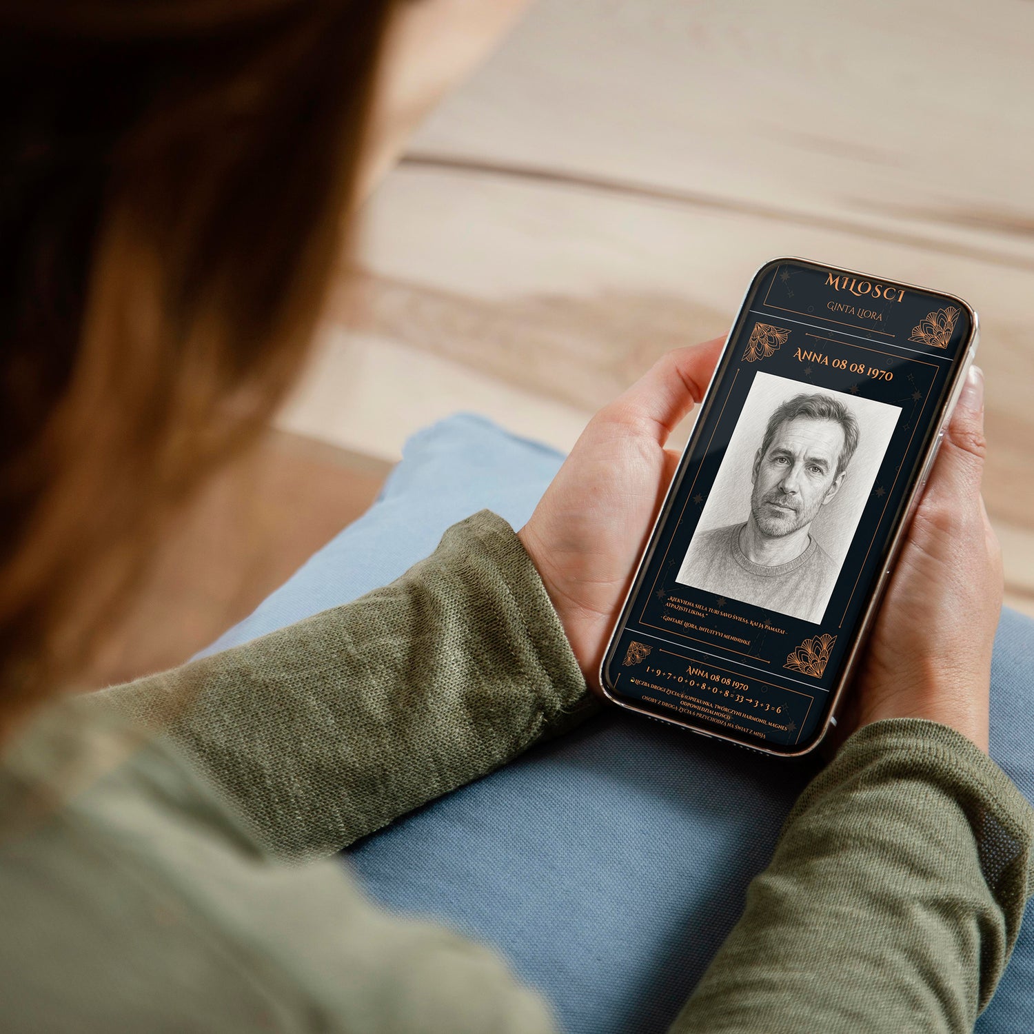 Precyzyjny wizerunek Twojego przyszłego męża, stworzony na podstawie Twojej energii i daty urodzenia, abyś mogła go rozpoznać, gdy się spotkacie.